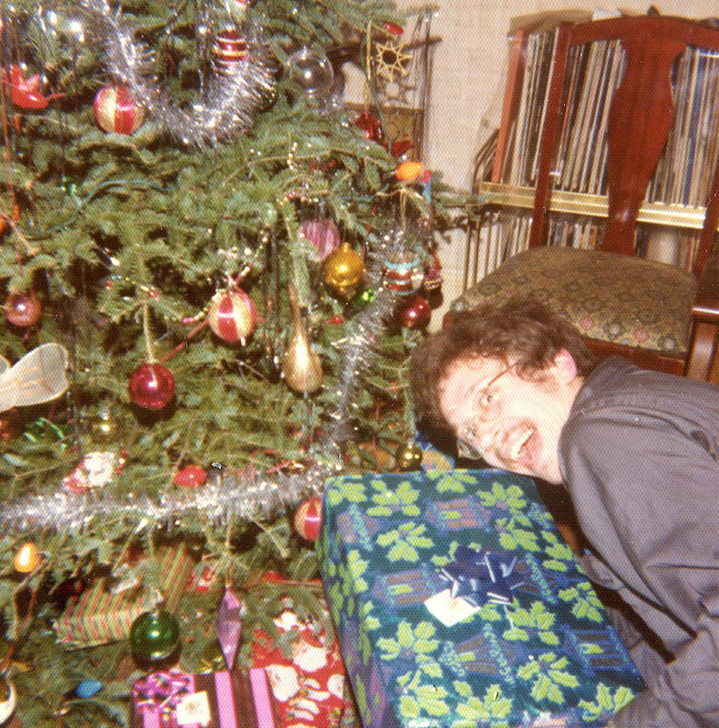 We all look for that Christmas feeling in our own ways. This is me exaggerating my greed, but not by much, around 1979. Hubley Family photo.