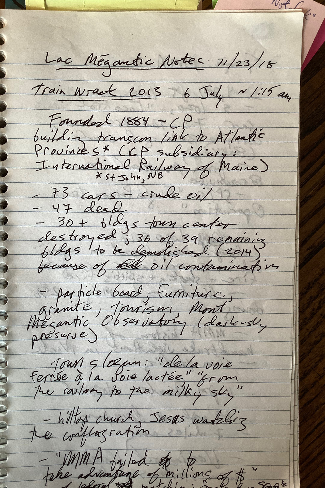 Notes on the tragic train wreck in Lac-Mégantic, Québec, in 2013.