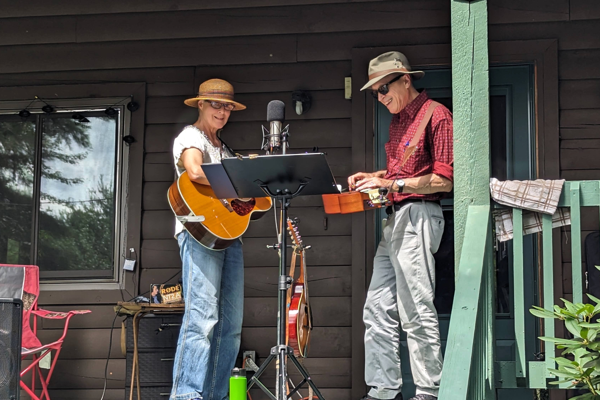 Gretchen Schaefer and Doug Hubley are the Americana duo Day for Night, shown performing at the Mountain Man Jamboree in North Waterboro, Maine, in August 2023. Nearly every song that has emerged from the yellow notebook has landed in our repertoire. (Don Perkins photo)