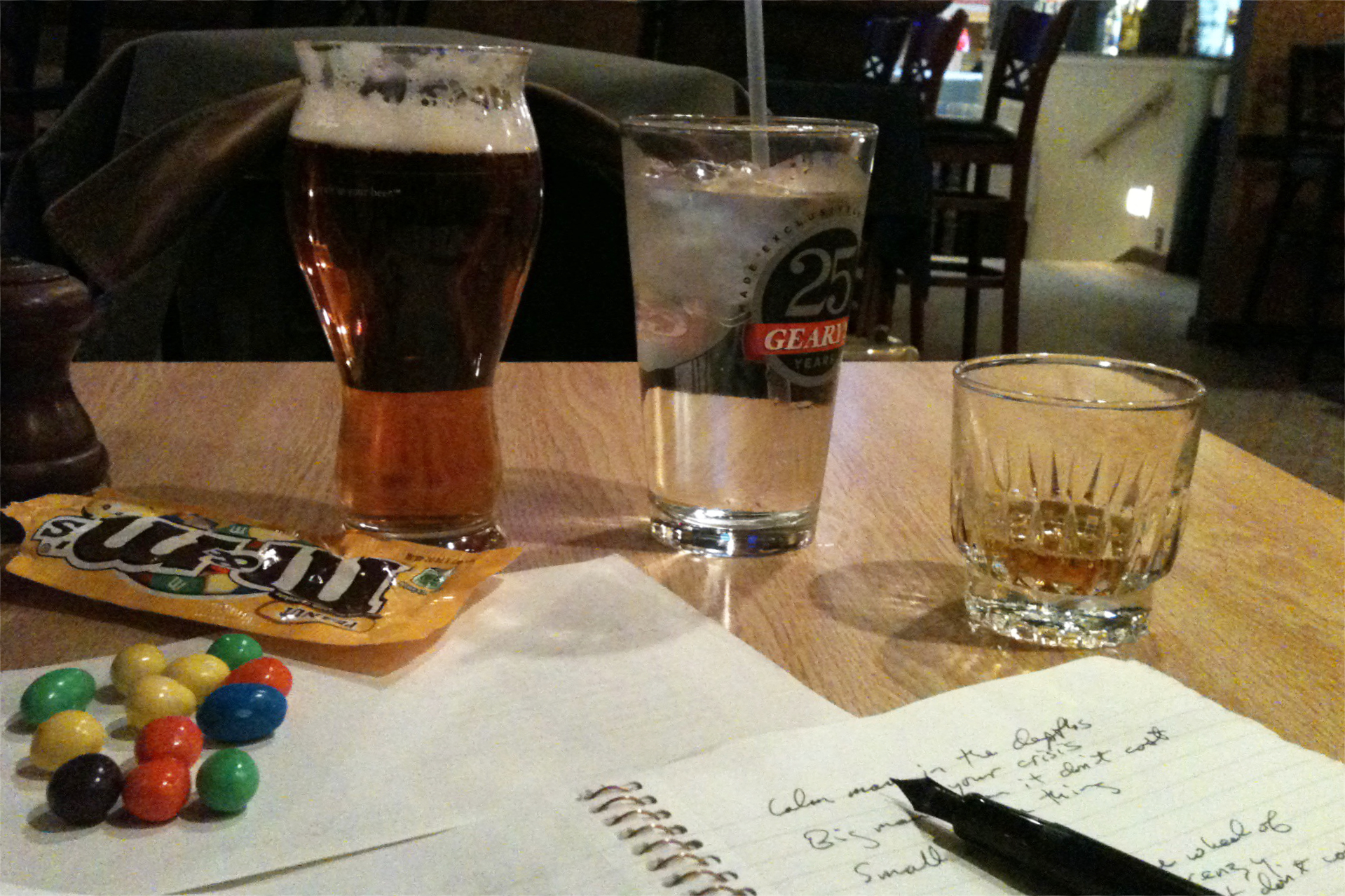 Scribbling in a less-exalted notebook at the Senator Inn & Spa, Augusta, Maine, November 2012. The result was the song “Where Was I.”