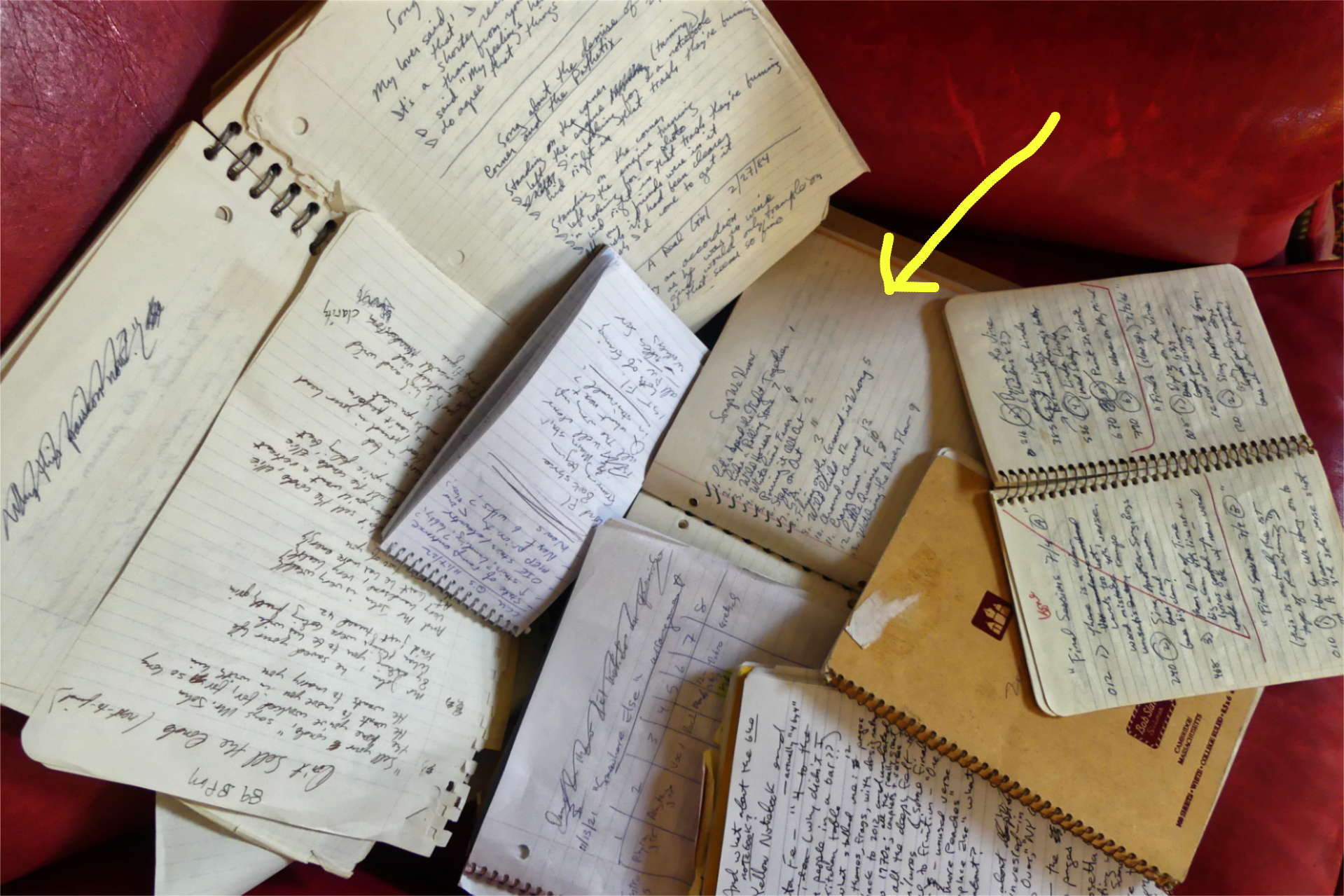 Those notebooks live in the Basement with countless others. They date from every decade and represent every notebook format. They contain aspirational song lyrics, never-realized TV script ideas, notes from college classes, names of party invitees, journal entries.