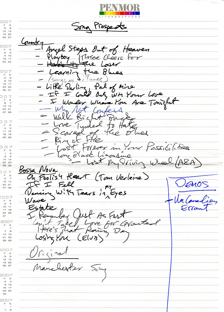 The setlist for our first Cornish Apple Festival performance, in 2008. “Brunswick” at the bottom refers to a gig we played the following month with bassist Steve Chapman and drummer Willy Thurston. Hubley Archives.