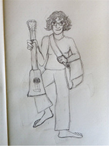 At the festival, in contrast to the Spring Celebration, we went for simplicity and played only guitar material. The weather caused some of the scheduled acts — as well as the PA provider — to withdraw. Gretchen and I were recovering from colds, but we managed to sing loud and still keep our voices throughout our allotted hour.