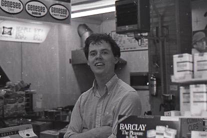 Phil Stanton working the food counter at Patty Ann’s, 1980. Scanned from a black & white negative/Hubley Archives.