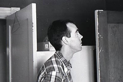 Jeff Stanton in the Stanton family quarters upstairs from the store on Ocean Street, 1980. Image scanned from black & white negative/Hubley Archives.