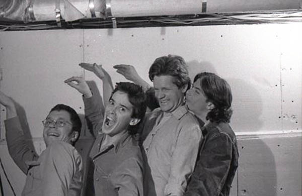 The FJ looking soulful in a 1981 publicity image. From left, Ken Reynolds, Jim Sullivan, Mike Piscopo, DH. Scanned from a black and white negative/Hubley Archives.