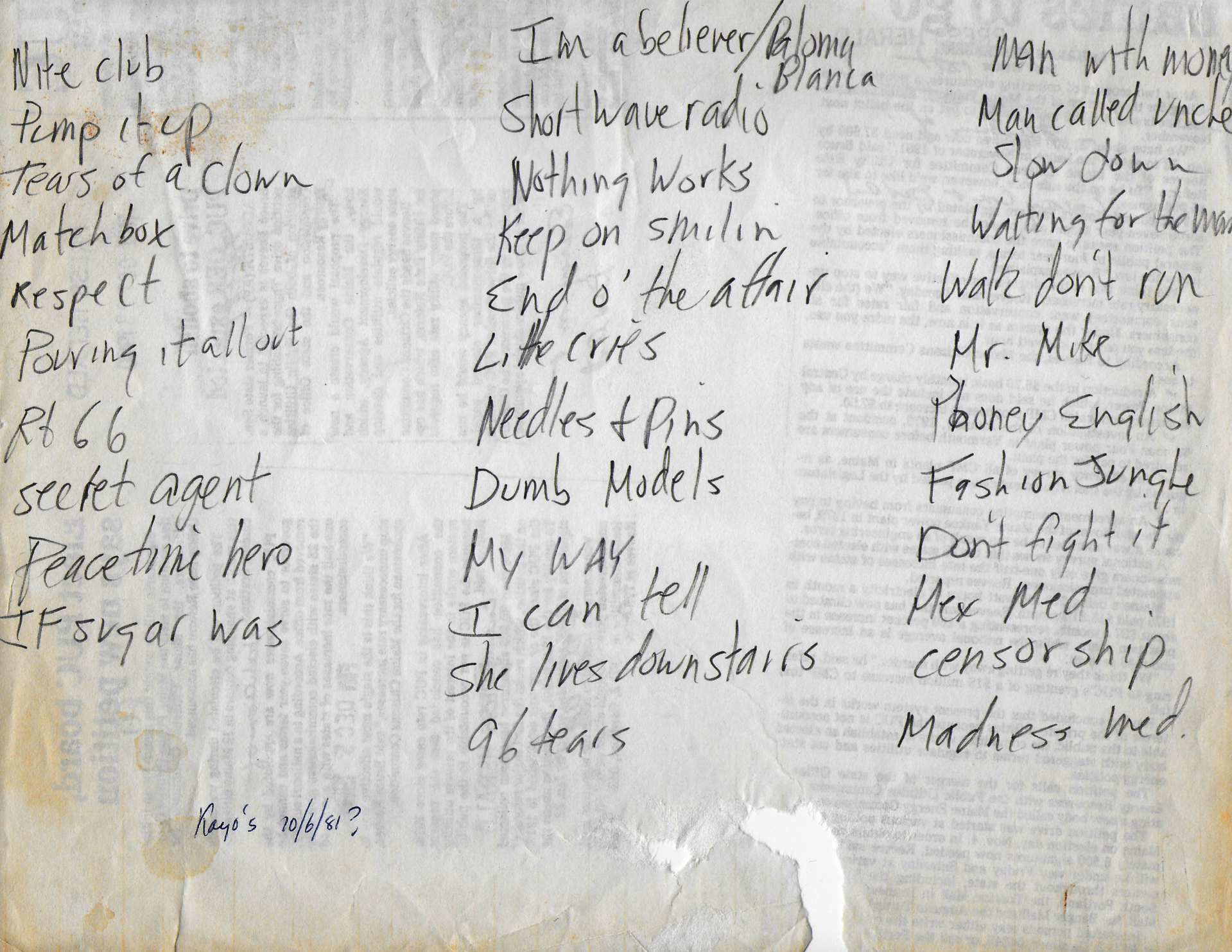 Gretchen says: The first gig I saw the Fashion Jungle play was at Kayo’s [Oct. 6, 1981], and I remember just being really impressed with the band. I didn’t really know you at the time, and people talk a lot of crap, so I did not have high expectations at all — I was basically thinking it was going to be terrible.