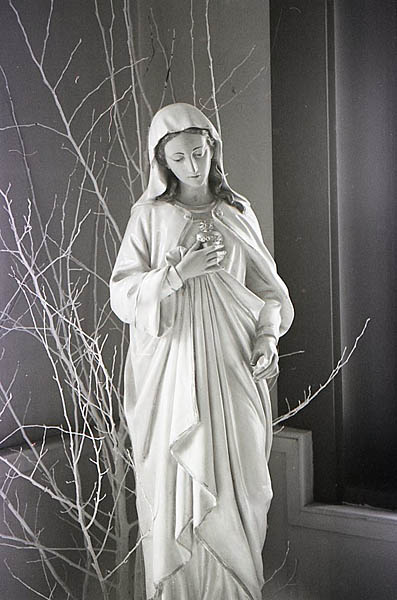 A statuette in The Cathedral of the Immaculate Conception, Portland, Maine, 1989. Digital scan from black & white negative / Hubley Archives.