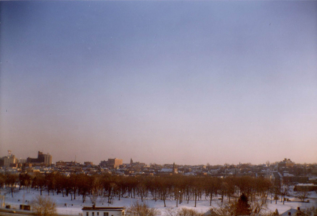 A wintery Portland seen from an upper floor at the University of Southern Maine, 1981. Camera: Kodak Brownie box model