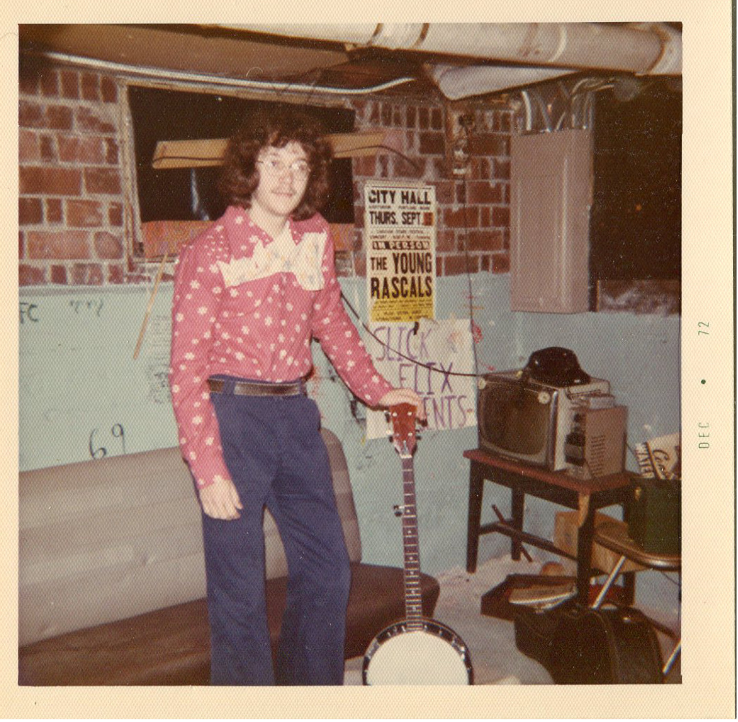 Doug and Sears banjo in the Hubley basement, circa 1972. Styling by Erebus. (Hubley Family photo)