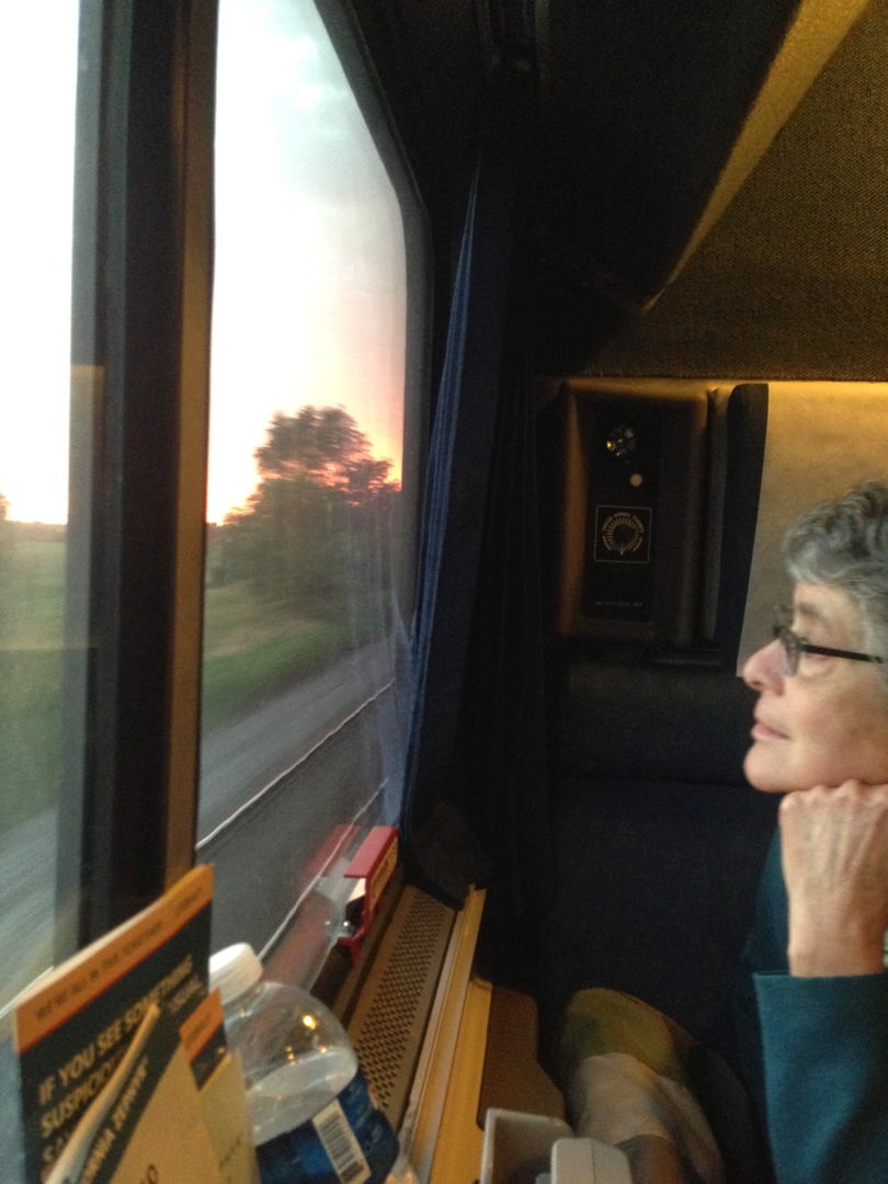 Two out of three tributaries that fed “Just a Moment in the Night“: Gretchen and the train. But there’s no room in an Amtrak roomette for a pedal steel. (Hubley Archives)