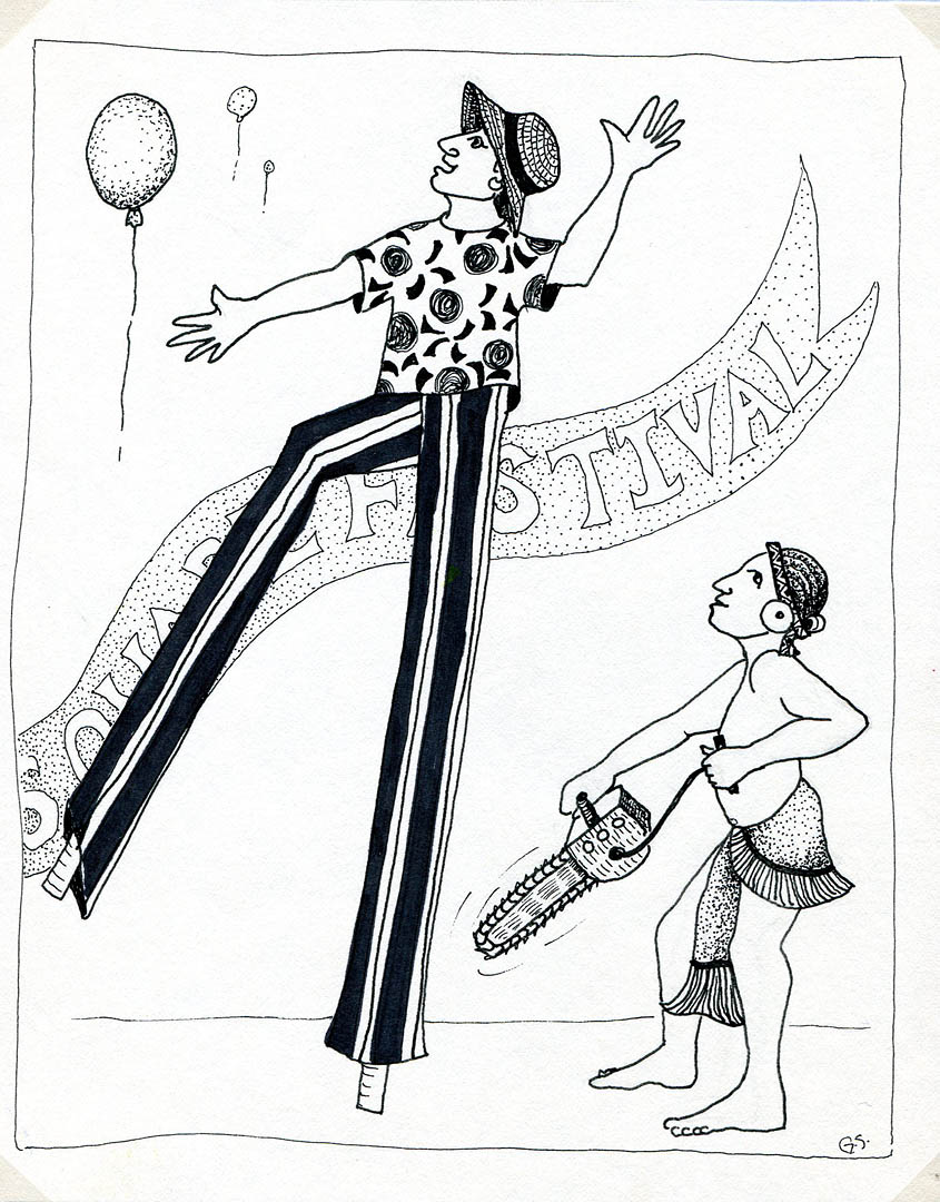 A Gretchen Schaefer illustration for Maine Times' A&E section. Hubley Archives.