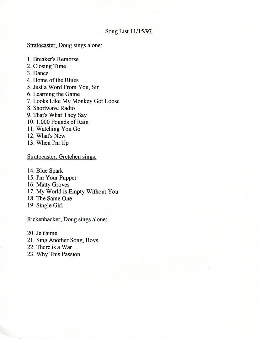Herewith, galleries of photos, set lists, news clippings, posters and other bits of paper erratically documenting the musical life of Doug Hubley.