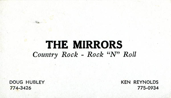Direct predecessors to the FJ, the Mirrors were a hard-working, semi-professional quintet that couldn’t make up its mind which band to be. With Chris Hanson, vocals; DH, guitar, organ, bass and vocals; Mike Piscopo, bass, guitar, organ and vocals; Ken Reynolds, drums and vocals; and Jim Sullivan, fiddle, bass, guitar, organ and vocals.